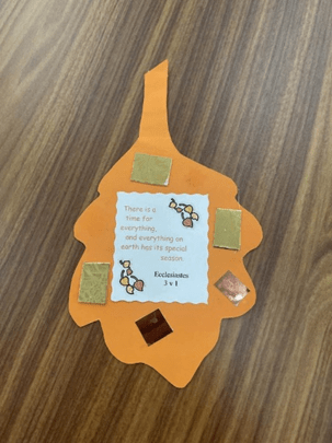 Theme was celebrating and giving thanks for Autumn, with the story ‘God’s Oak Tree.