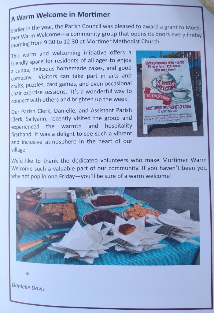 Mortimer Methodist Church has installed a Bench, (made of recycled plastic) at our Cemetery in Drury Lane. So when waking, you may rest in the peace and tranquility of our wonderful village, and give thanks.